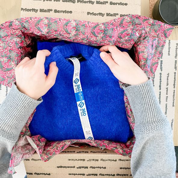 After the sale, ship your item with the 360 ID Tag attached. It is malleable and soft, so it will not damage or puncture fabrics.